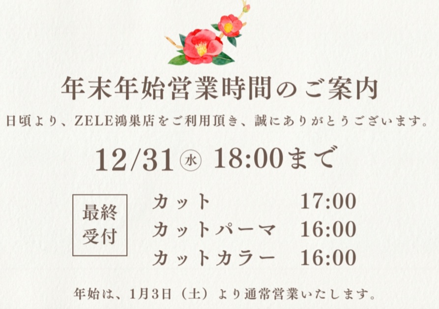 2025.11.21 年末年始のお知らせ(ZELE鴻巣店)
